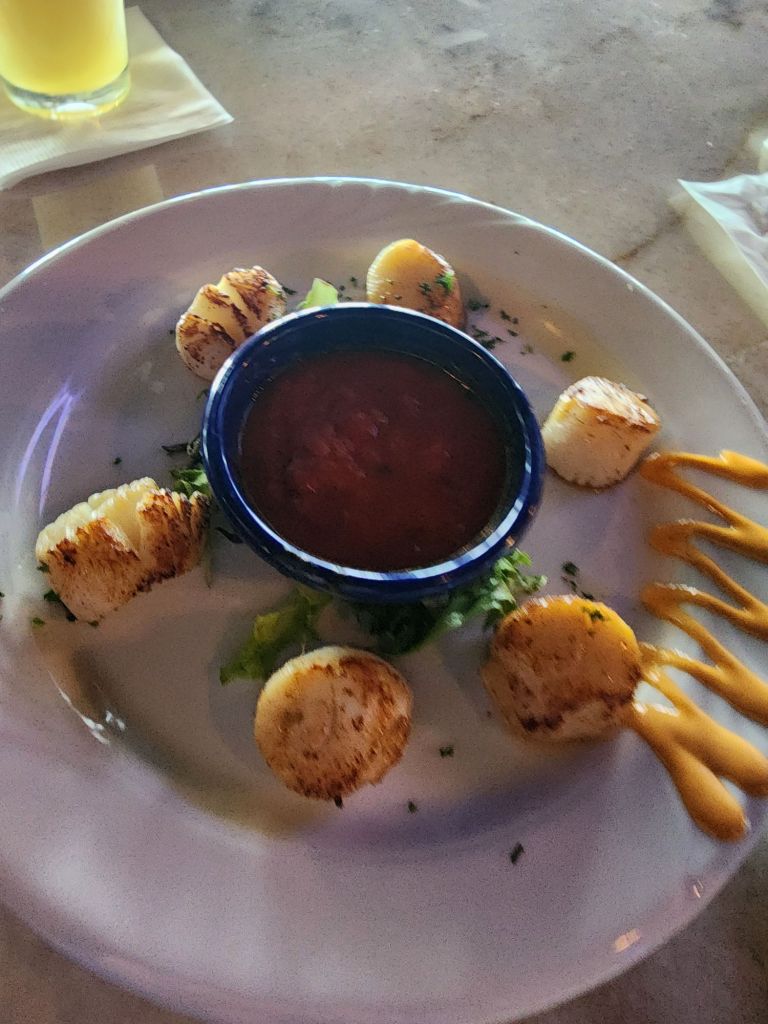 Scallops were top notch with a ton of flavor! The roasted garlic tomato sauce was a big hit.