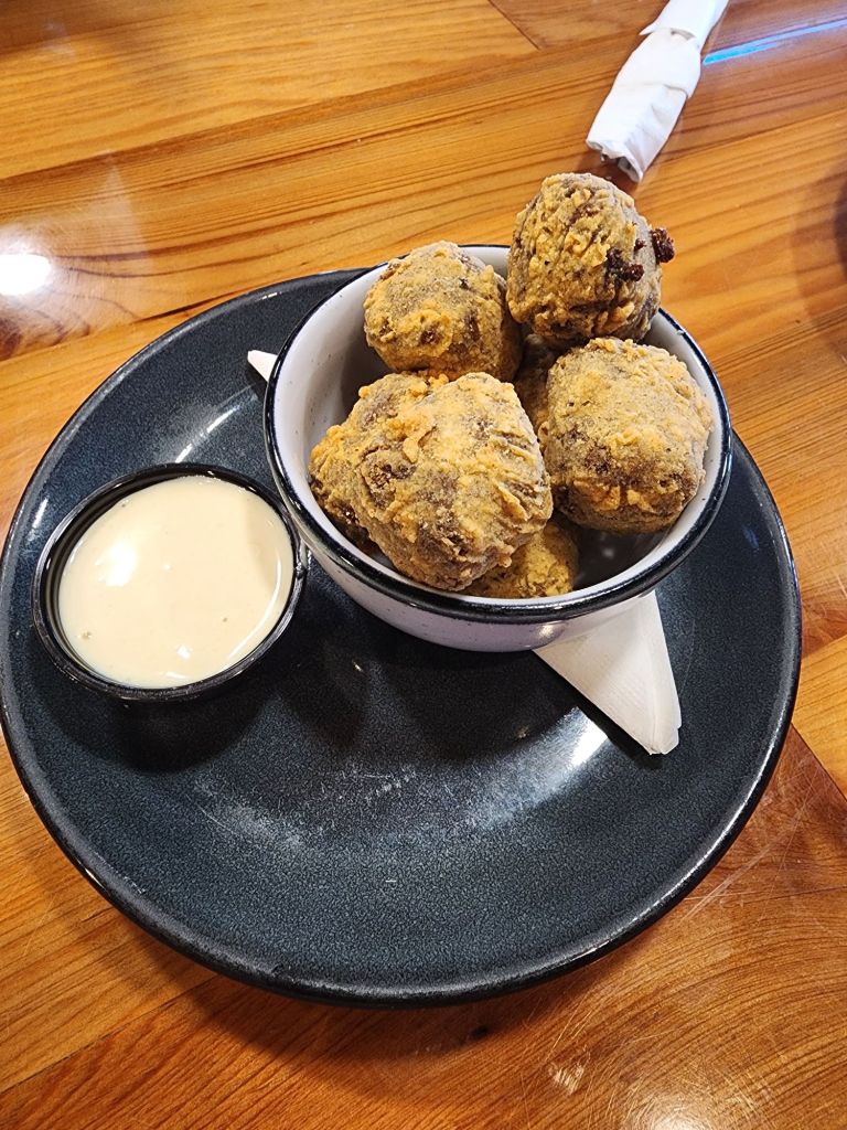 Boudin Balls – fried spicy pork sausage and rice with Cajun spices
