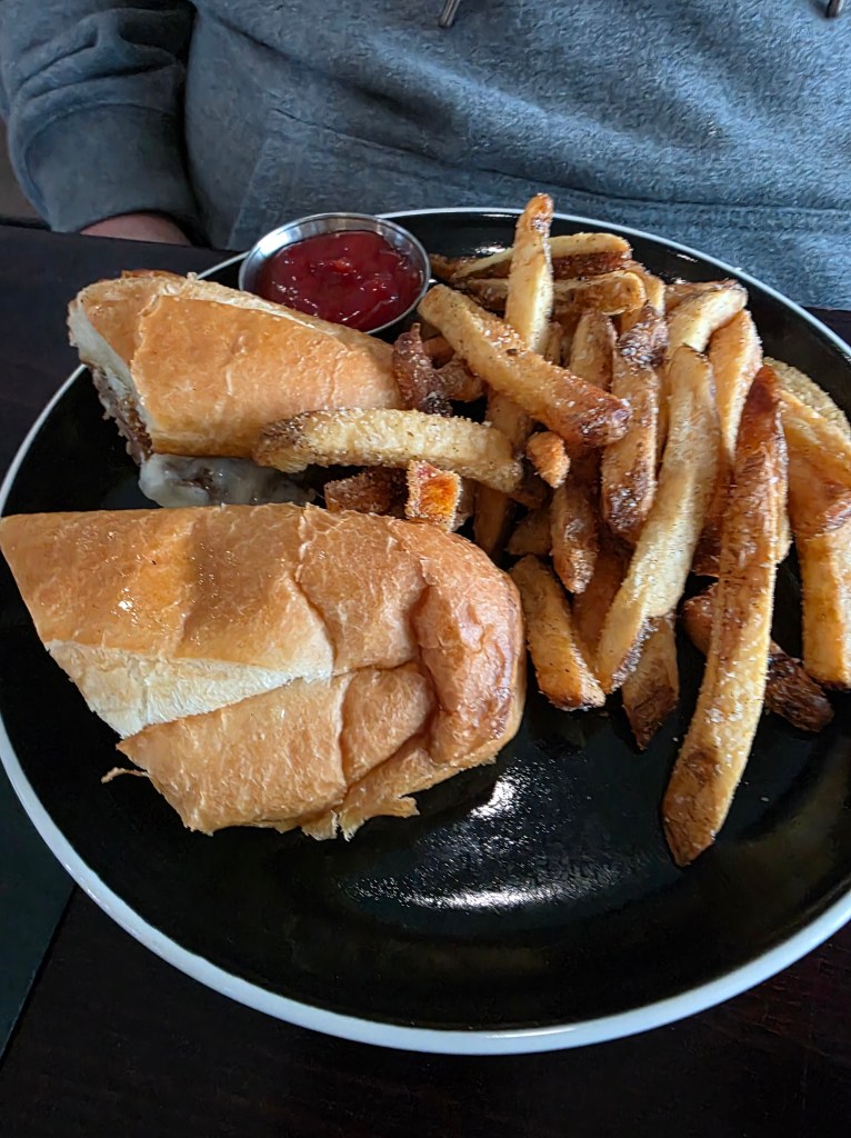 Chris had the Italian Beef – Toasted hoagie, Provolone Cheese, Au Jus, Caramelized Onions, and Mushrooms.