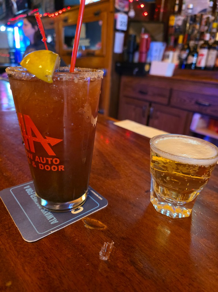 Stop 1 – Sportsman’s Taverna. We get medicine aka Caesars. Picture for reference and it was good. You get a wee little baby shot of beer with it too. https://www.sportsmenshibbing.com/