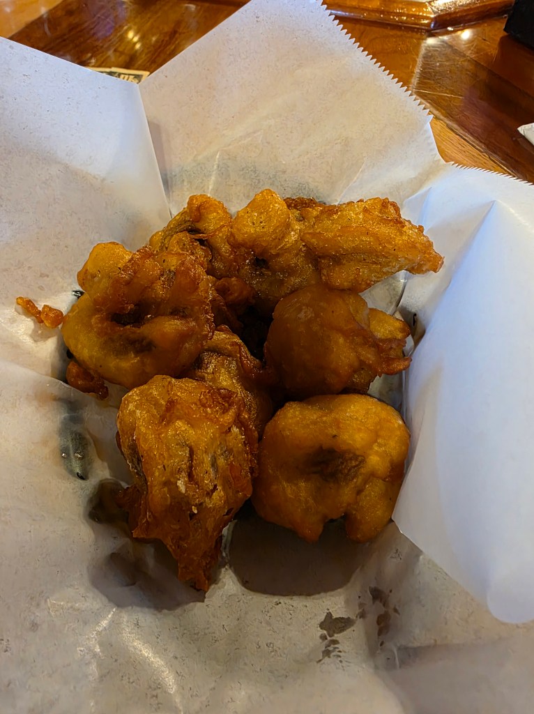 We had eggs and hash and hand battered deep fried mushrooms. Ranch was homemade (EXTRA POINTS FOR THIS)